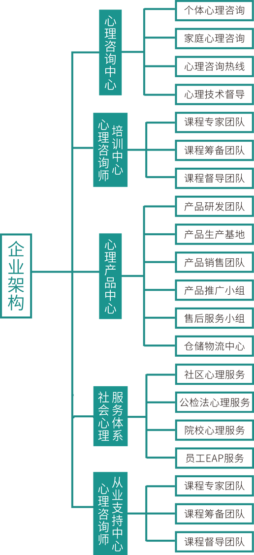 三、心理產(chǎn)品中心:產(chǎn)品研發(fā)團隊、產(chǎn)品生產(chǎn)基地、產(chǎn)品銷售團隊、產(chǎn)品推廣小組、倉儲物流中心、售后服務(wù)小組